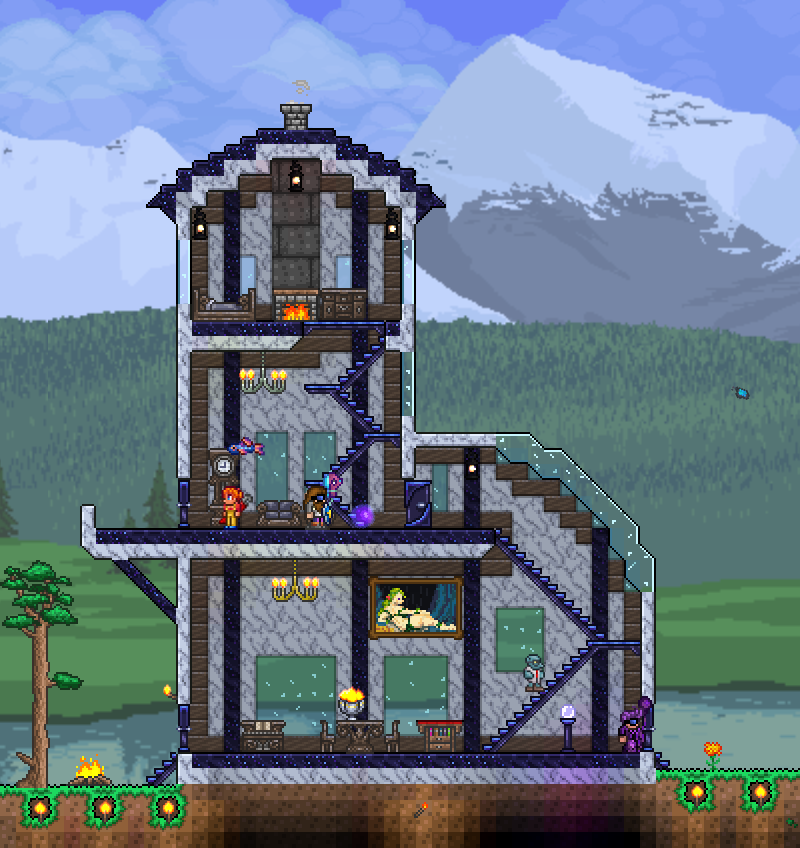 My terraria house is a functional tower of brick built mainly to keep the guide from letting zombies in at night but epionx has gone just a little bit further.